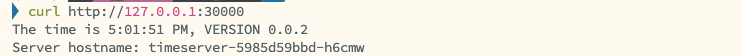 service/timeserver NodePort 10.96.236.37 <none> 80:30000/TCP 25s pod=timeserver-pod
