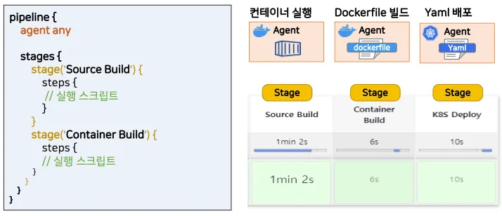 - 파이프라인 2가지 구문 : 선언형 파이프라인(권장)과 스크립트형 파이프라인
