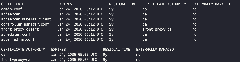 sudo kubeadm certs check-expiration