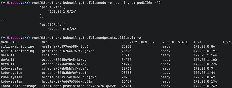 • Cilium은 대역을 나눠서 각 노드에 /24씩 할당 (예: 172.20.0.0/24, 172.20.1.0/24 등)
