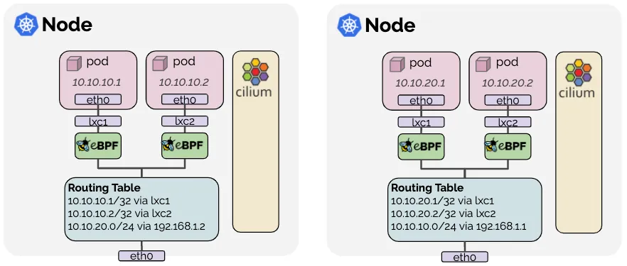 - Kubernetes PodCIDR 정보를 그대로 사용(IPAM은 쿠버네티스가 관리).