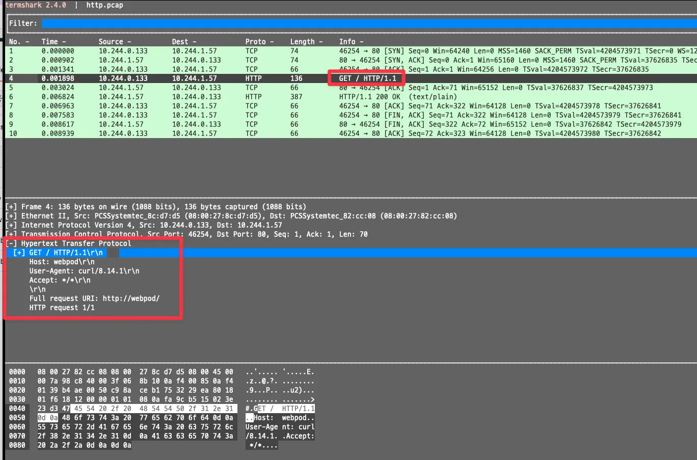 [k8s-ctr] tcpdump -i eth1 tcp port 80 -nnq 혹은 hubble observe -f --pod curl-pod